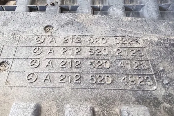 Cache inférieur de pare-chocs pour MERCEDES-BENZ E (W211), en état d'occasion. Cette pièce est adaptée aux voitures particulières et se trouve à l'avant. Elle est de couleur argent et est une pièce d'origine avec le logo du fabricant (OE). Le numéro de pièce OEM est A2125202123, et elle est compatible avec le numéro de pièce de remplacement A2125200223.