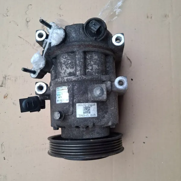 Compresseur de climatisation d'occasion 97701-D7100 pour KIA Sportage et Hyundai Tucson 1.7 CRDI D4FD. La pièce est en bon état de fonctionnement avec un kilométrage de 80 000 km. Facture TVA disponible. L'article ne vient pas avec un emballage.
