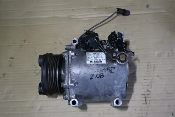 Compresseur de climatisation complet pour Mitsubishi Outlander I 2.0 essence, années modèles 2003-2007. La pièce est vérifiée, en bon état et destinée à une réinstallation. Les photos montrent l'objet proposé.