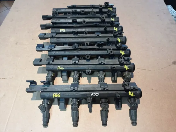 Rampe d'injection d'occasion pour véhicules VW, Skoda, Seat et Audi. Numéro de pièce OEM 030906031J, compatible avec les moteurs à essence. Il s'agit d'une pièce originale avec le logo du fabricant (OE). L'article est en bon état et est fourni avec une facture TVA. Convient aux voitures particulières européennes.